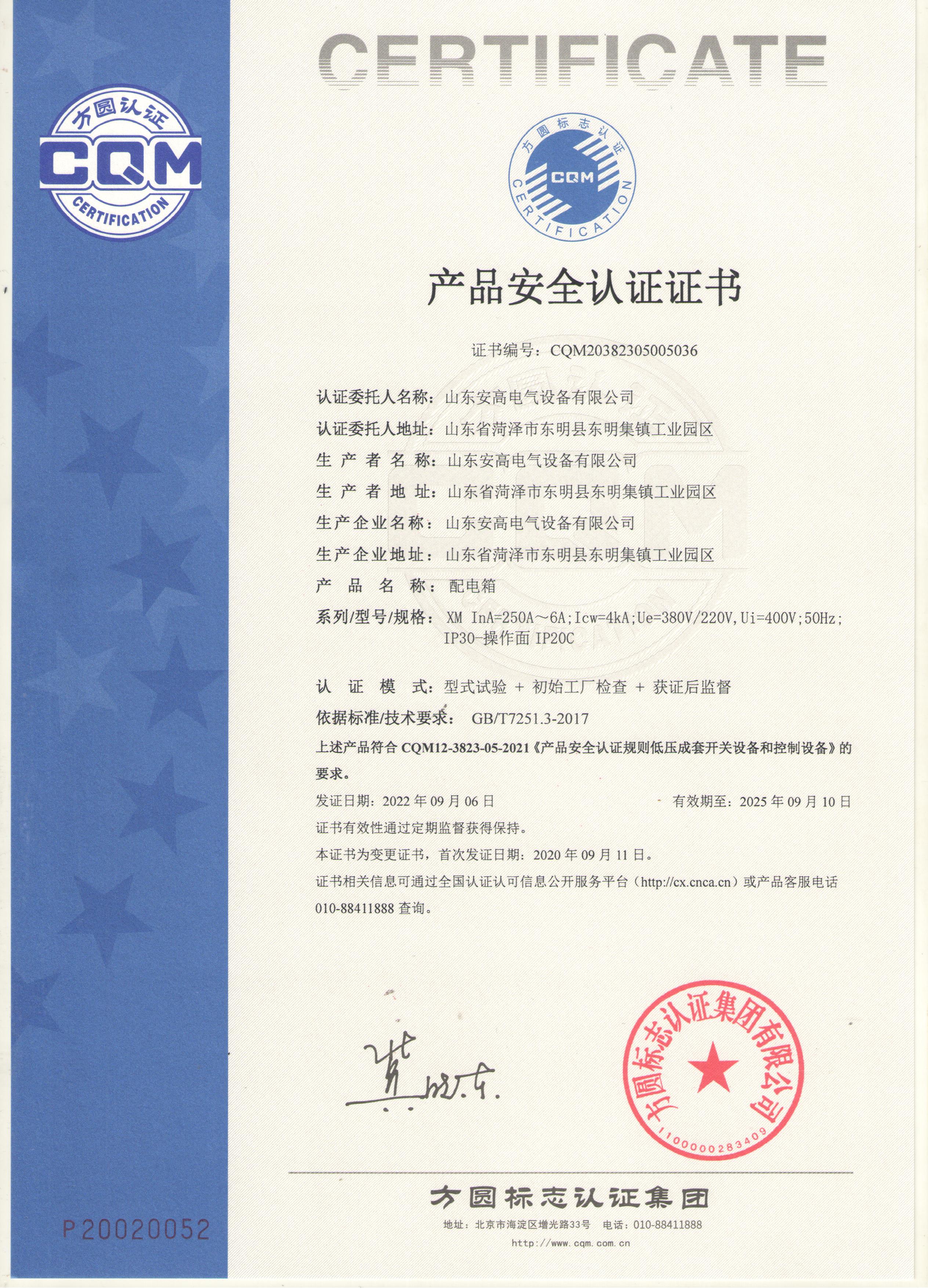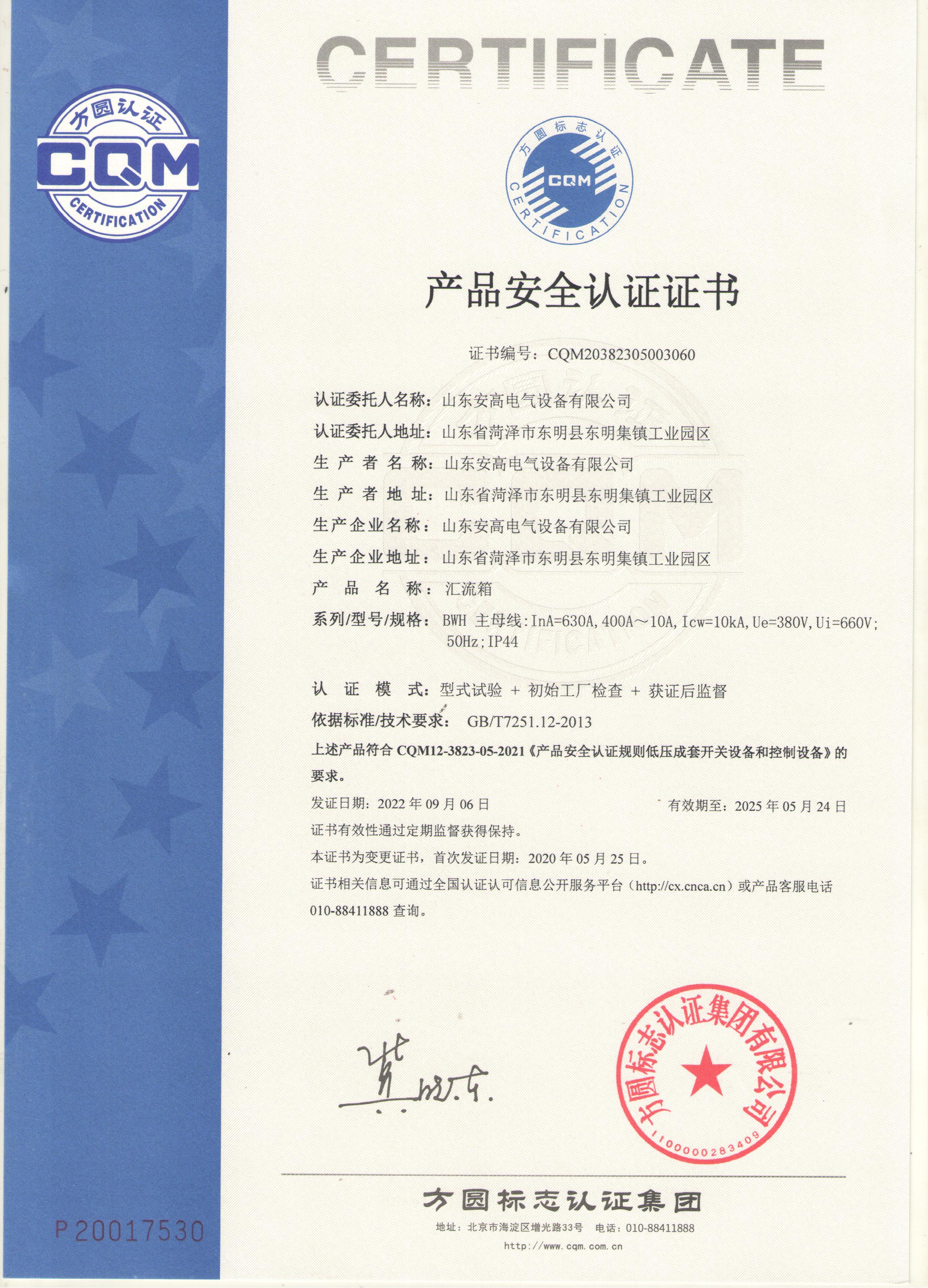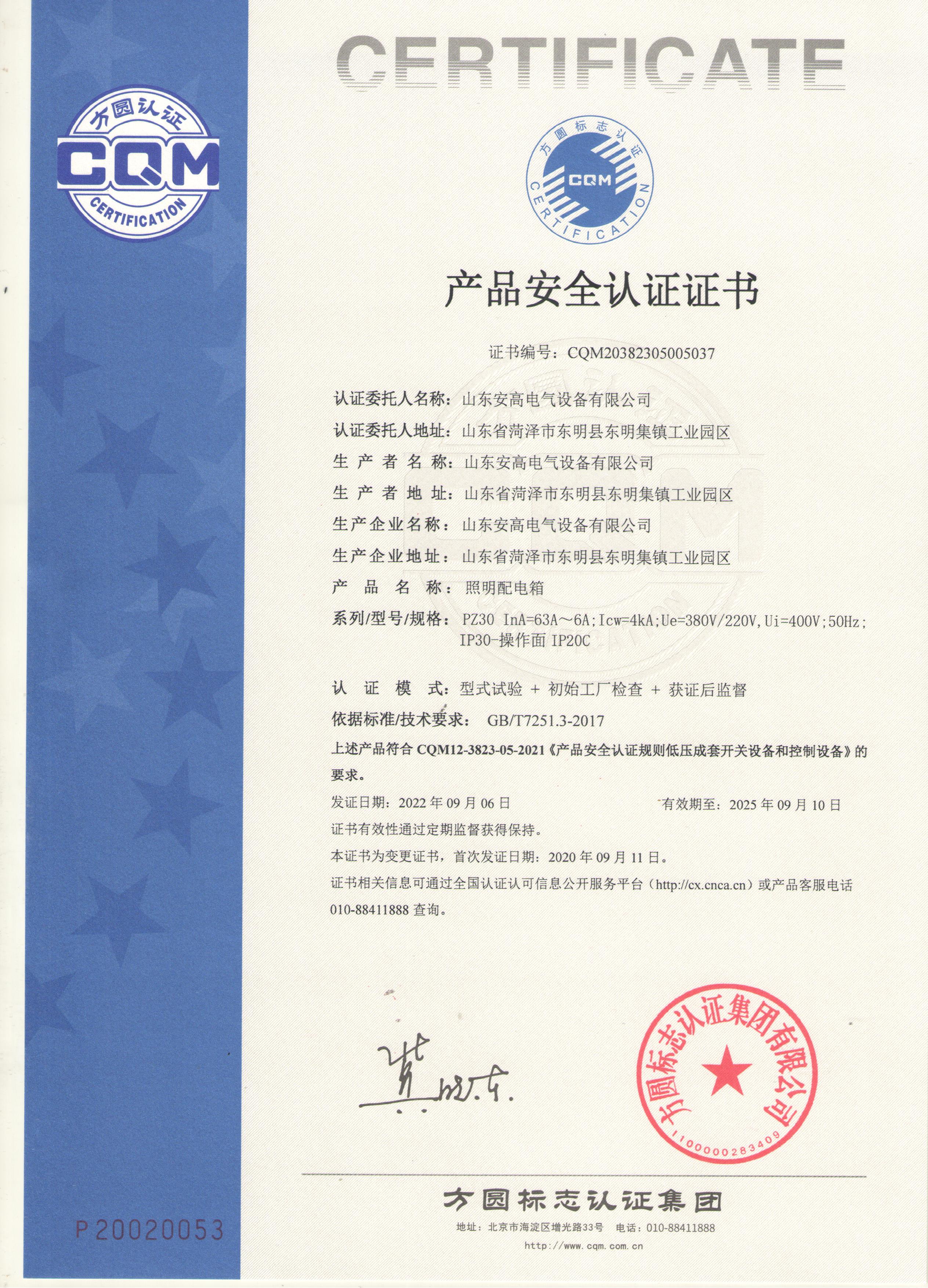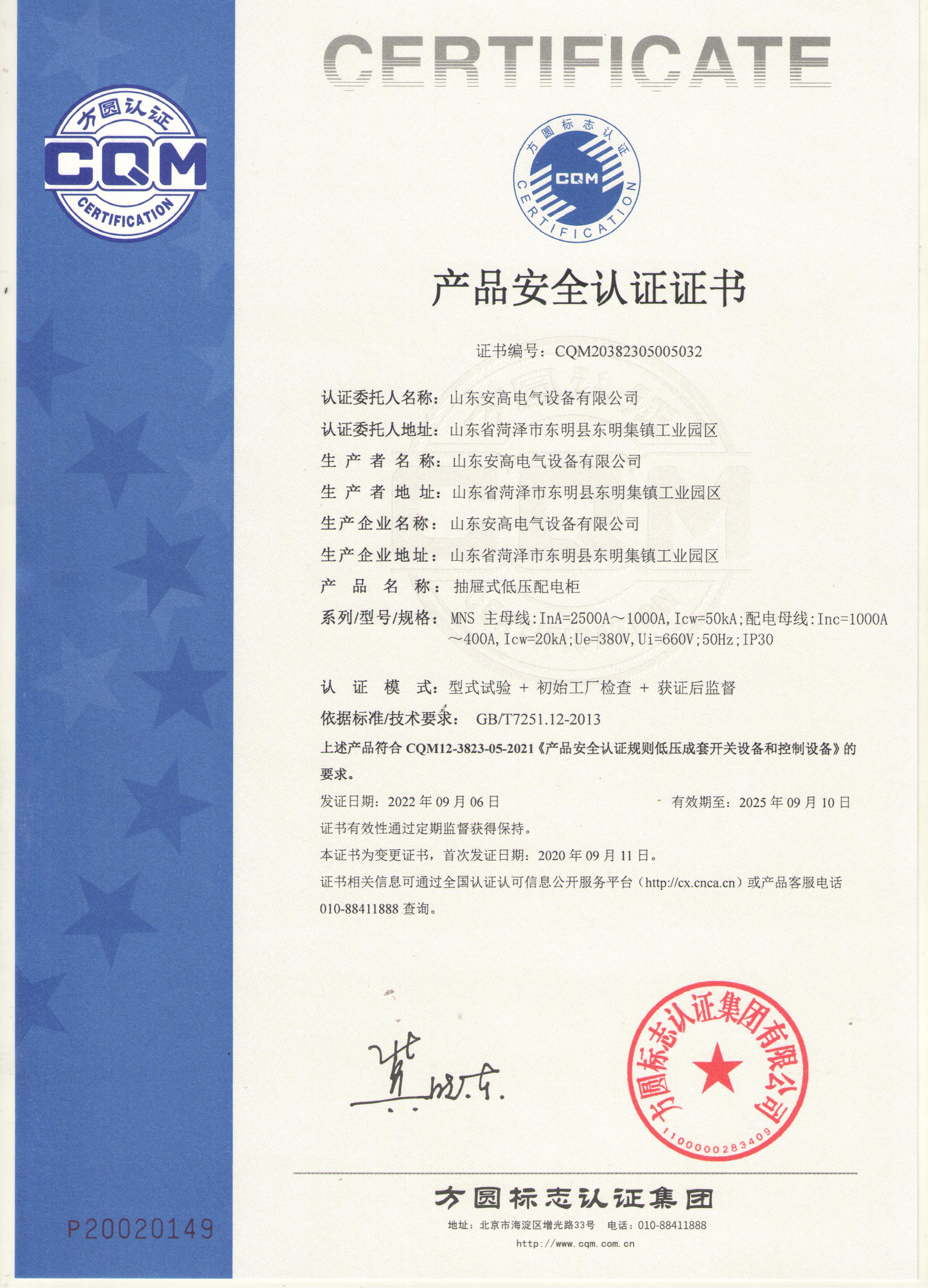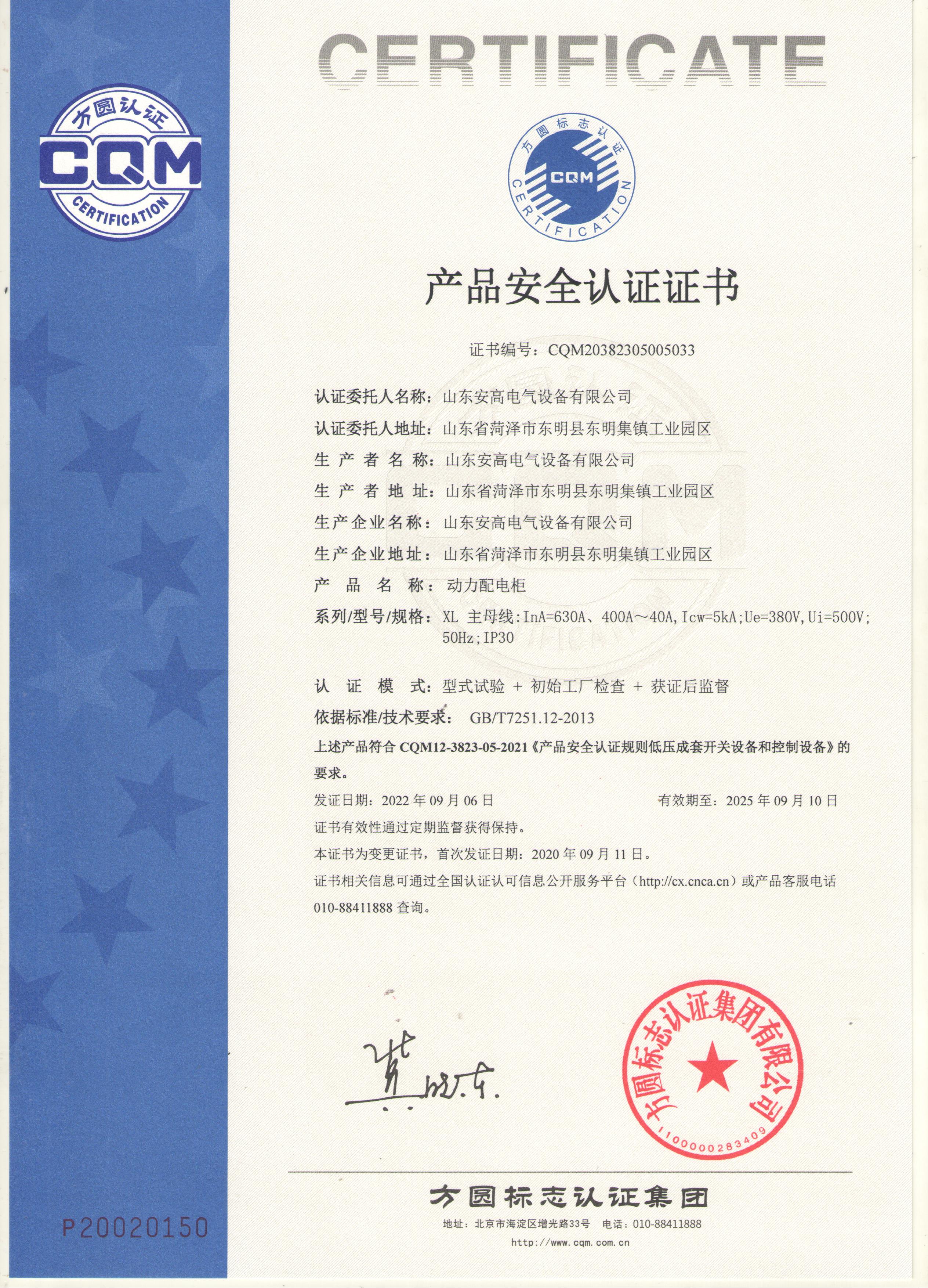 • 產(chǎn)品安全認(rèn)證證書(shū)